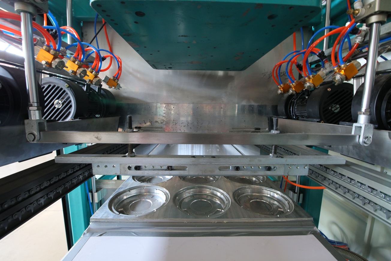 The feeding system is linked with the heating and molding stations to ensure that material conveying is consistent with the process cycle.