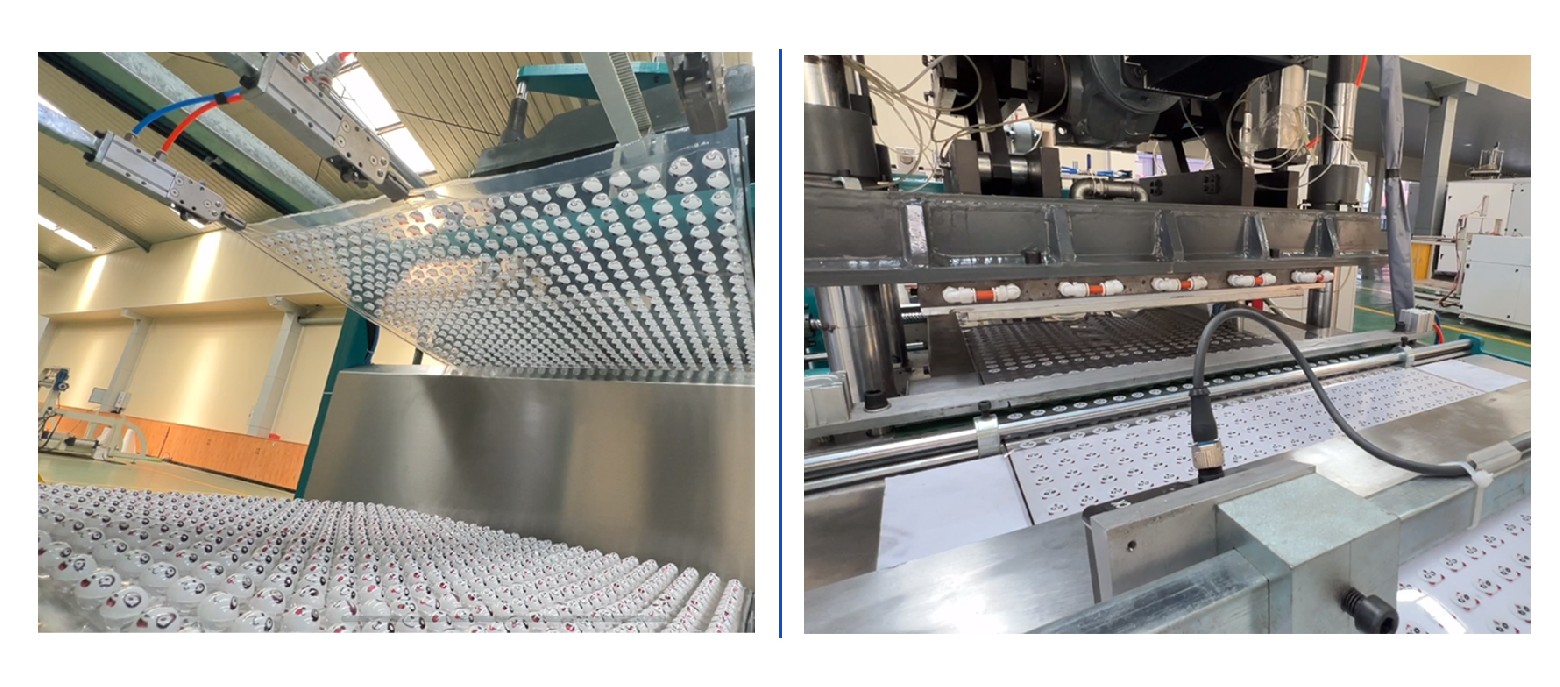 7.Precision Molding: The adjusted sheet enters the molding zone. The lower mold rises, and combined with vacuum/positive pressure, the softened sheet is accurately adsorbed/pressed into the mold cavity. At this point, the printed pattern is 'fixed' at the corresponding position designed in the mold.